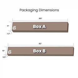 - Box A dimensions: 69″ W x 7.3″ H x 11″ D – 52.8 lbs.