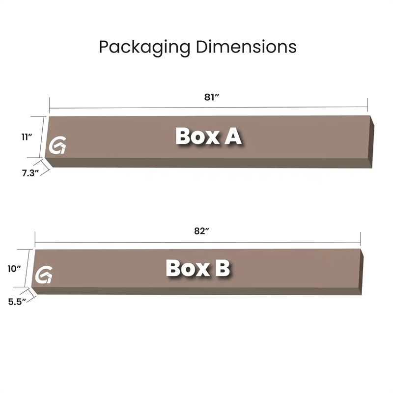 - Box B dimensions: 82″ W x 5.5″ H x 10″ D – 57.2 lbs.
